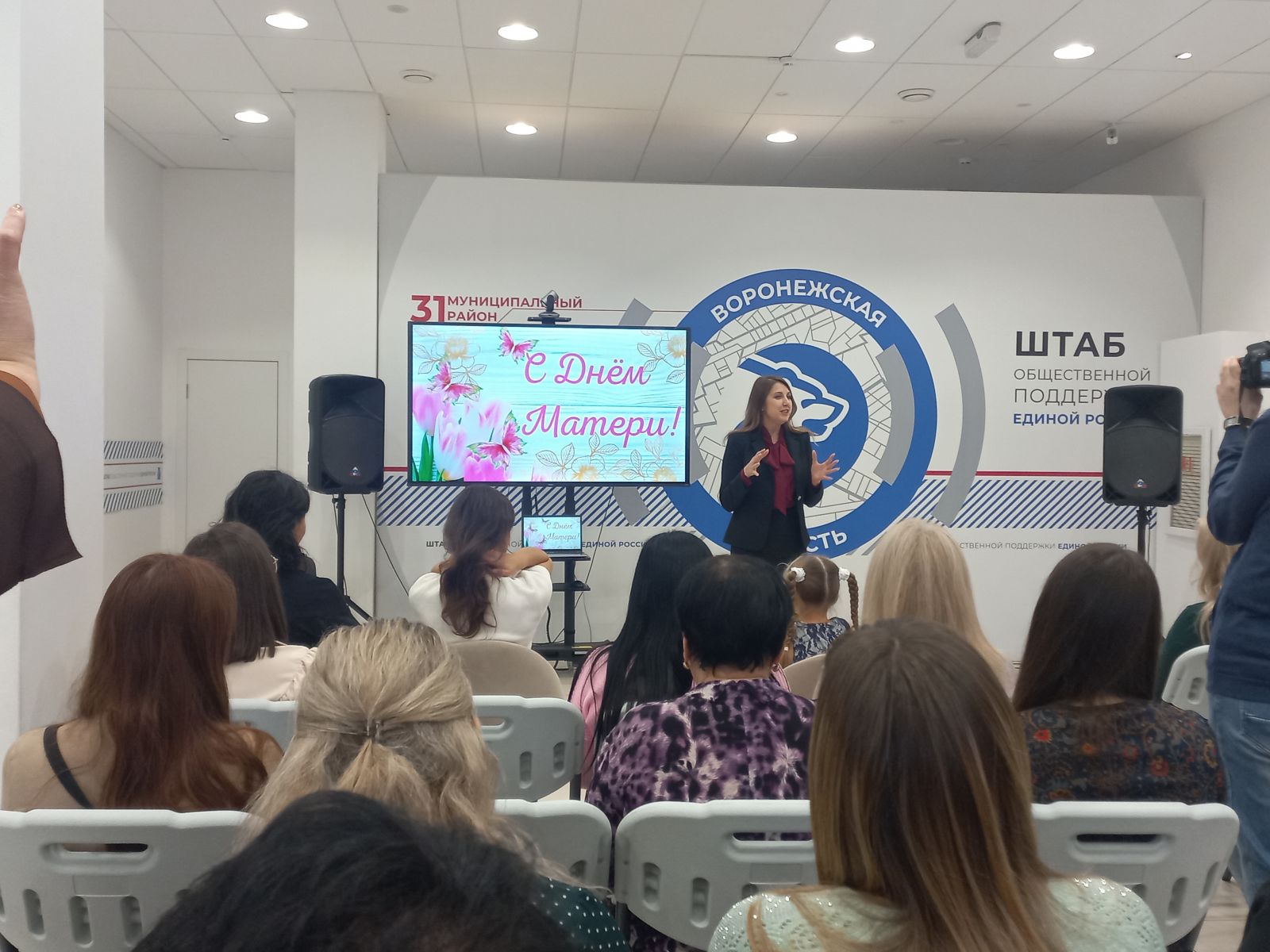 С приветственным словом к присутствующим обратилась руководитель Штаба, региональный координатор партпроекта «Женское движение Единой России», депутат Воронежской областной Думы Мария Андрейчук, которая лично поздравила всех мам с праздником.