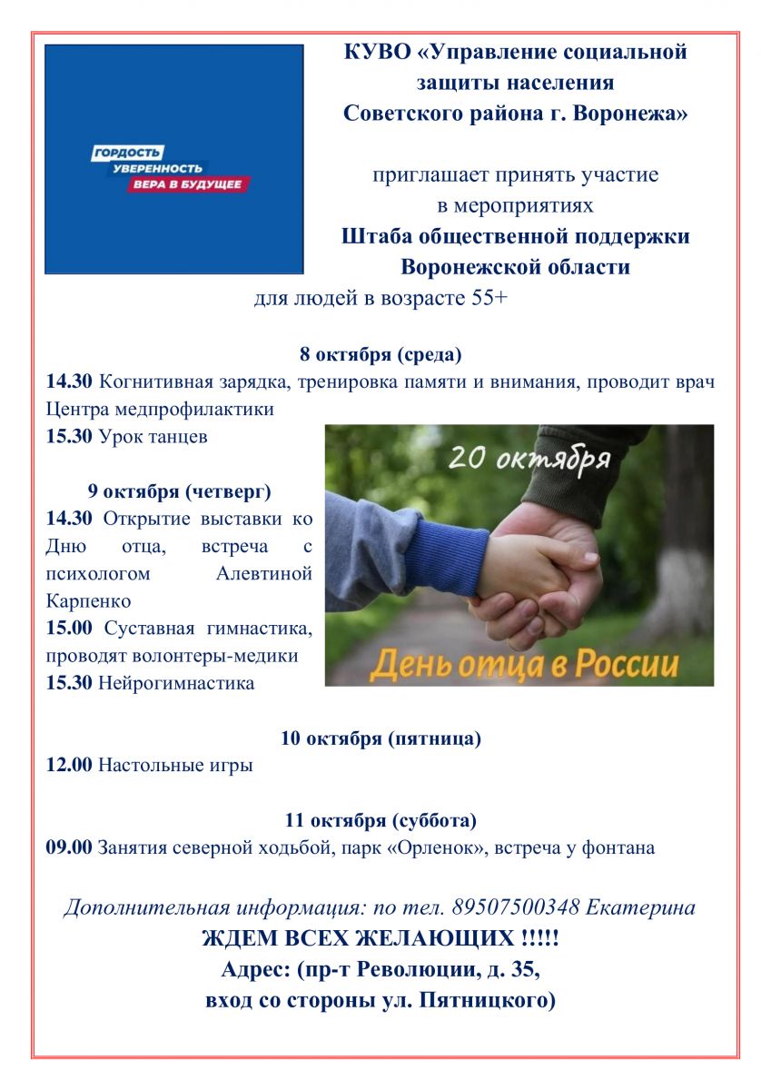 Приглашаем принять участие в мероприятиях Штаба общественной поддержки Воронежской области c 08 по 11 октября 2025 года