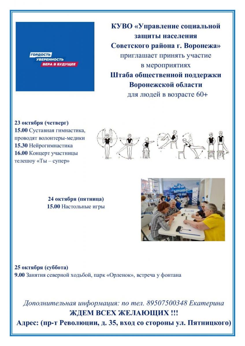 Приглашаем принять участие в мероприятиях Штаба общественной поддержки Воронежской области c 23 по 25 октября 2025 года