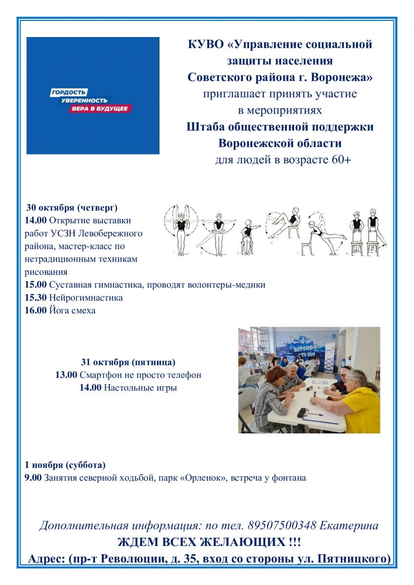 Приглашаем принять участие в мероприятиях Штаба общественной поддержки Воронежской области c 30 октября по 01 ноября 2025 года