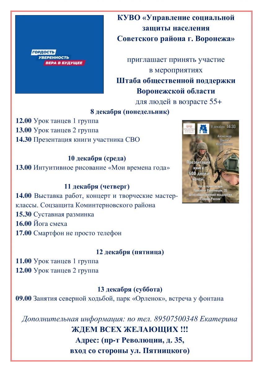 / Приглашаем принять участие в мероприятиях Штаба общественной поддержки Воронежской области c 08 по 13 декабря 2025 года