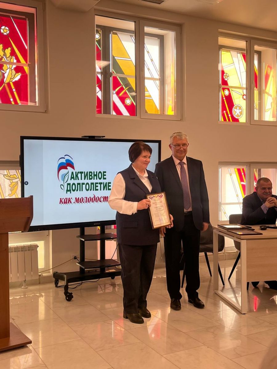 Завершилось заседание торжественной церемонией награждения. За активную жизненную позицию и большой личный вклад почетными грамотами были отмечены представители ветеранских организаций. Среди награжденных – председатель первичной ветеранской организации "КУВО УСЗН Советского района", заместитель директора Мария Федоровна Никулина.