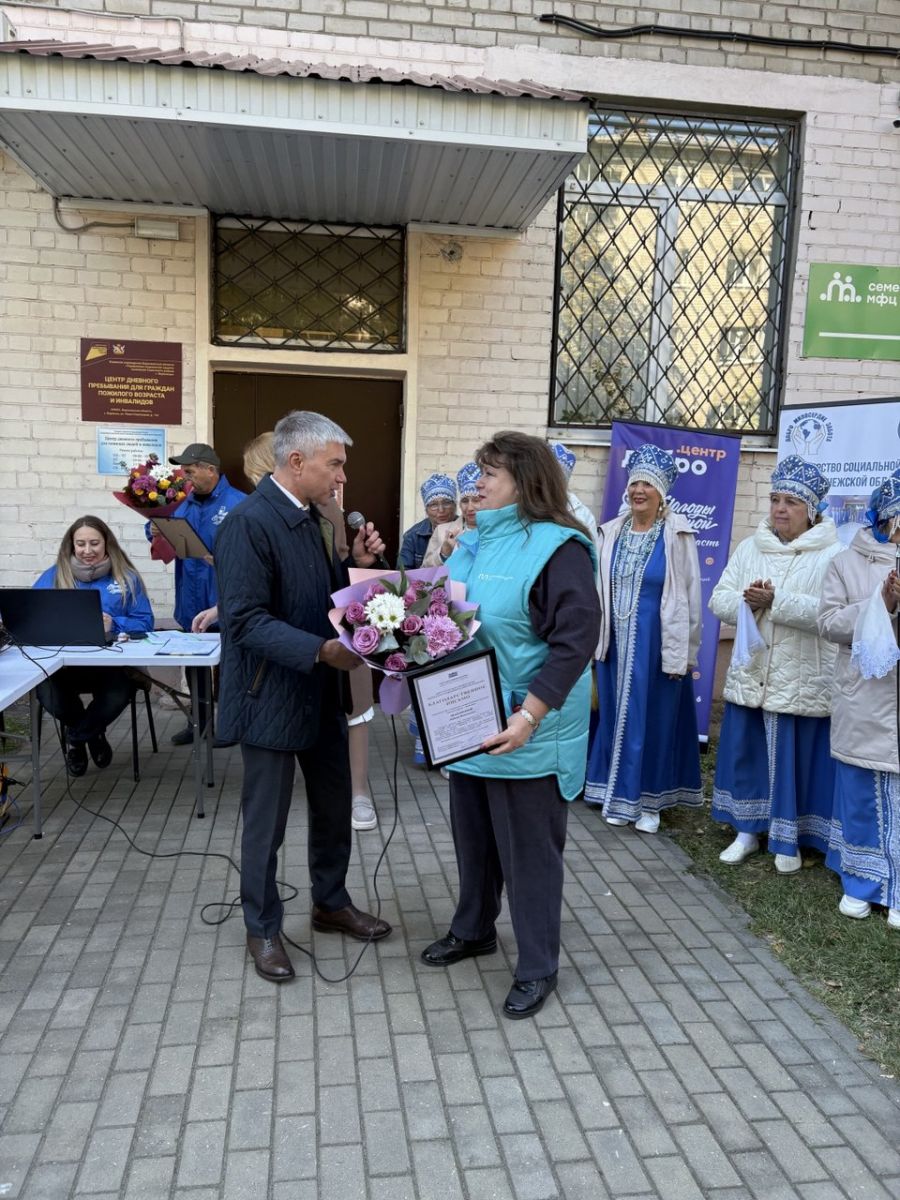 Евгений Васильевич принял участие в официальной части уличного праздника «Главное – сердцем не стареть!», посвященного Международному дню пожилых людей и наградил лучших «серебряных» волонтеров.